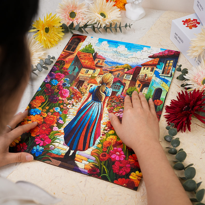Blütenpfad - Holzpuzzle