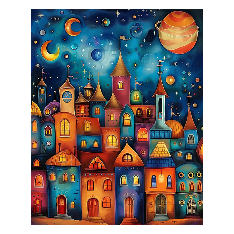 Märchenhafte Nachtlandschaft - Holzpuzzle