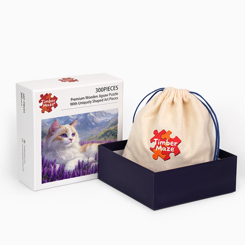 Ragdoll-Katze im Lavendelfeld - Holzpuzzle