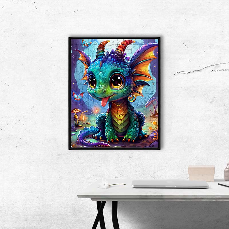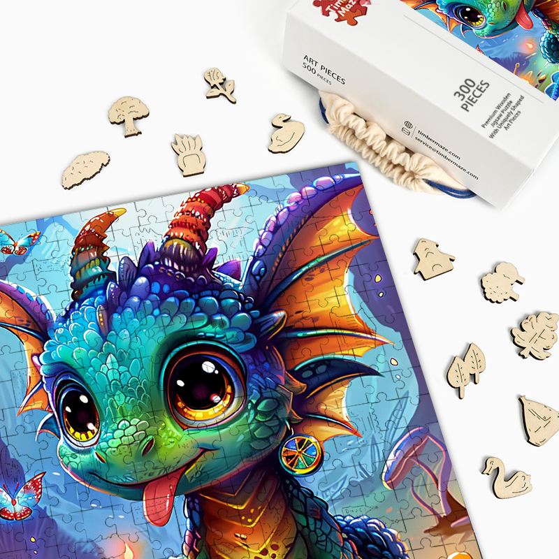 Verspieltes Drachenbaby im Zauberwald - Holzpuzzle